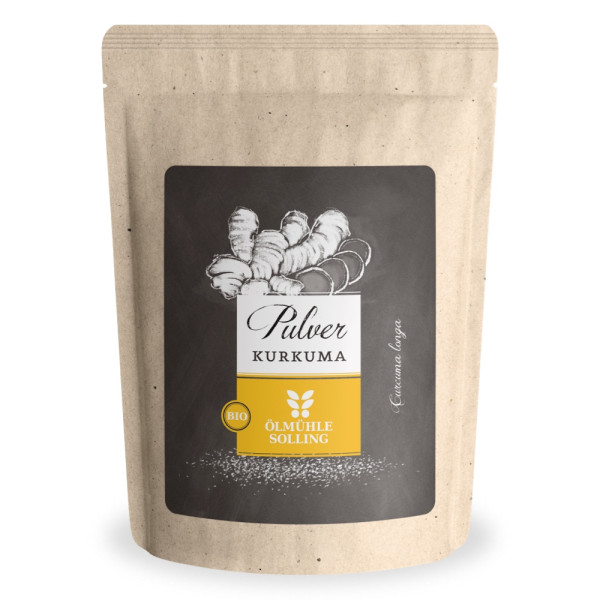 Das Kurkumapulver der Ölmühle Solling wird schonend und in Rohkostqualität aus kontrolliert biologisch angebauten Kurkumawurzeln hergestellt. Die gelben Wurzeln werden nach der Ernte geschält, sanft bei maximal 40 °C getrocknet und zu einem feinen Pulver vermahlen. Durch die schonende Herstellung bleiben die hochwertigen Inhaltsstoffe und die natürliche Farbe erhalten. Kurkumapulver enthält den sekundären Pflanzenstoff Curcumin und ist in der Ayurvedaküche und Naturheilkunde besonders geschätzt.